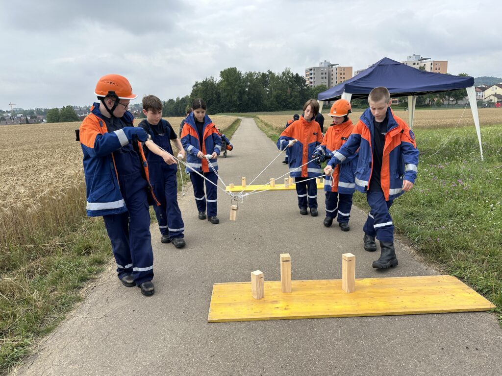 Von Montagsmaler, Traktor ziehen, Eierlauf, Riesenjenga, Erste Hilfe, einen Golfball durch einen Schlauch befördern, Knoten und Stiche, Erbsen schlagen bis zum Zielschießen mit dem Strahlrohr war alles dabei.