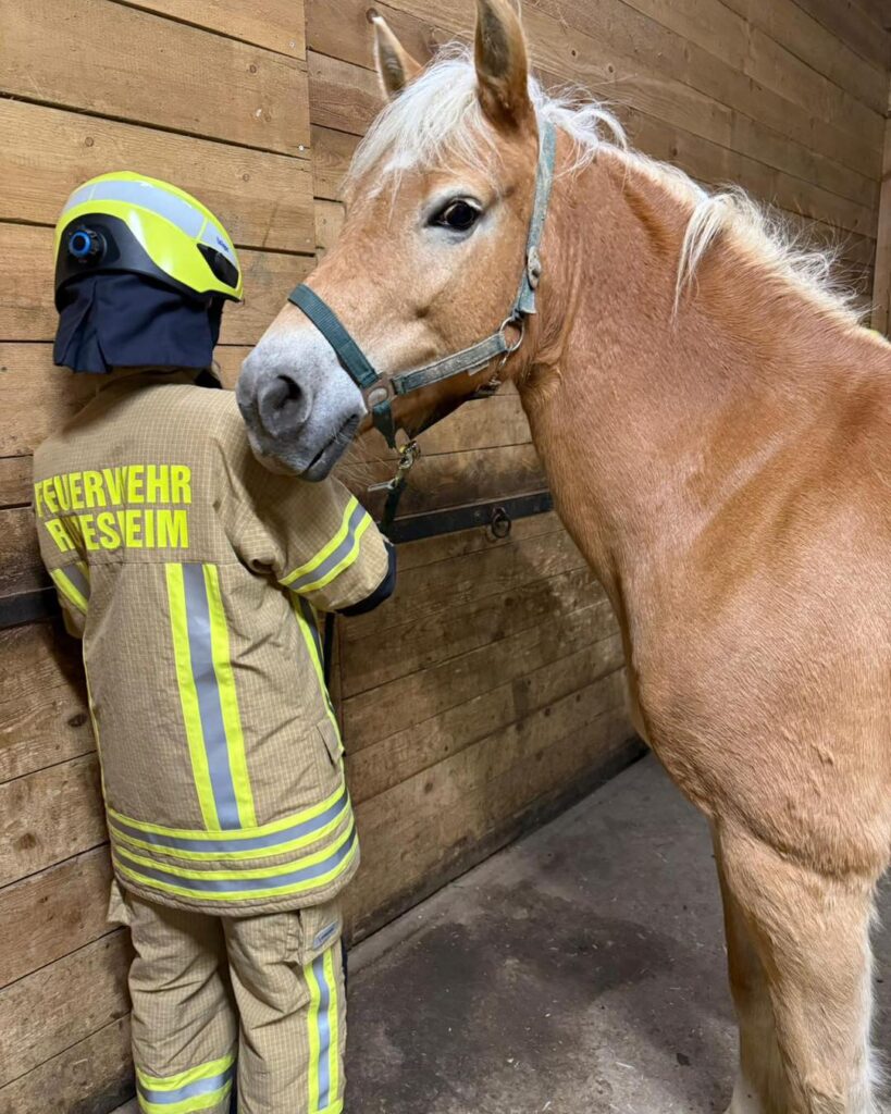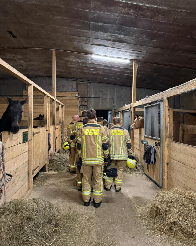 Am Abend des 31. Oktober 2025 war die Feuerwehr Rutesheim im Rahmen des Grundlagentrainings auf einem Pferdehof zu Gast, um den richtigen Umgang mit Pferden im Einsatzfall zu trainieren.
