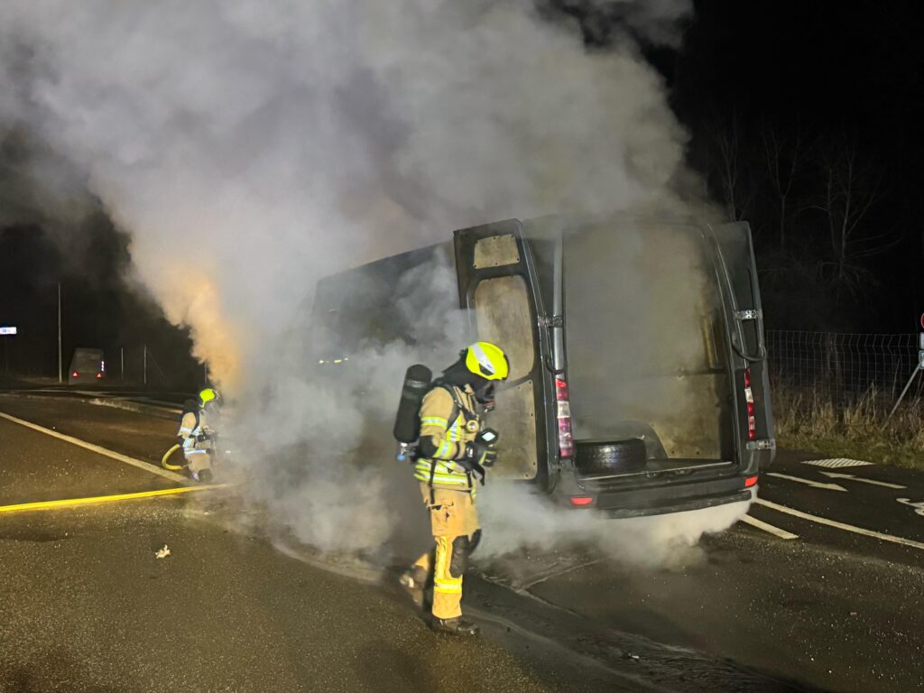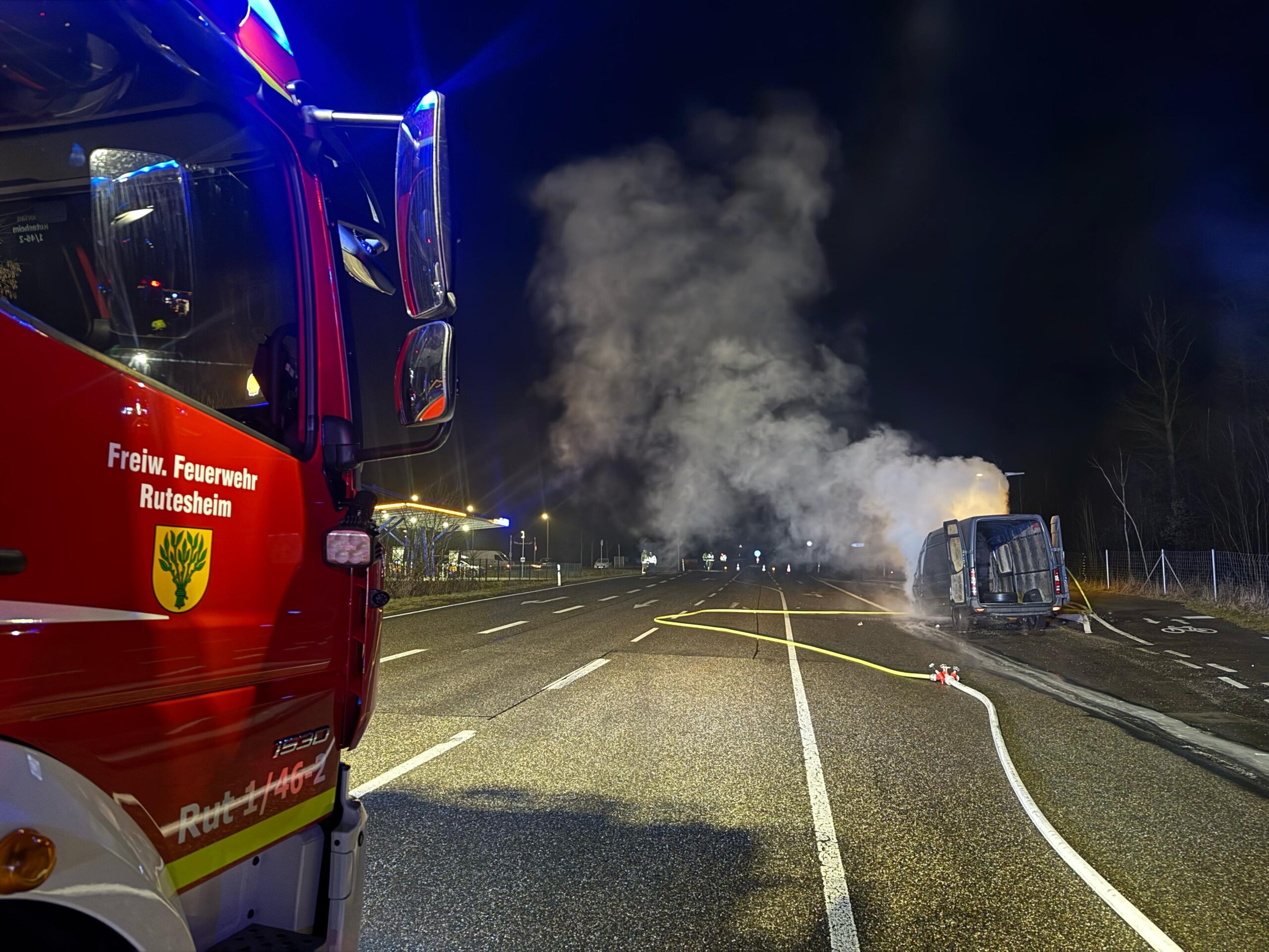 Beim Eintreffen an der Einsatzstelle stand ein Transporter im vorderen Bereich in Vollbrand. Ein Trupp unter Atemschutz nahm unverzüglich die Brandbekämpfung mit einem C-Rohr auf. Das Feuer konnte zügig unter Kontrolle gebracht und vollständig gelöscht werden. Im Anschluss wurde das Fahrzeug mit einer Wärmebildkamera auf verbliebene Glutnester überprüft. Diese wurden gezielt abgelöscht.
