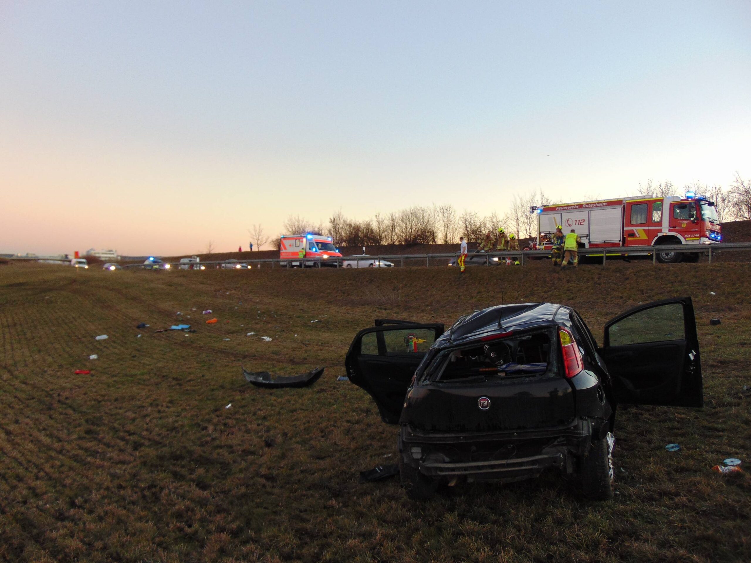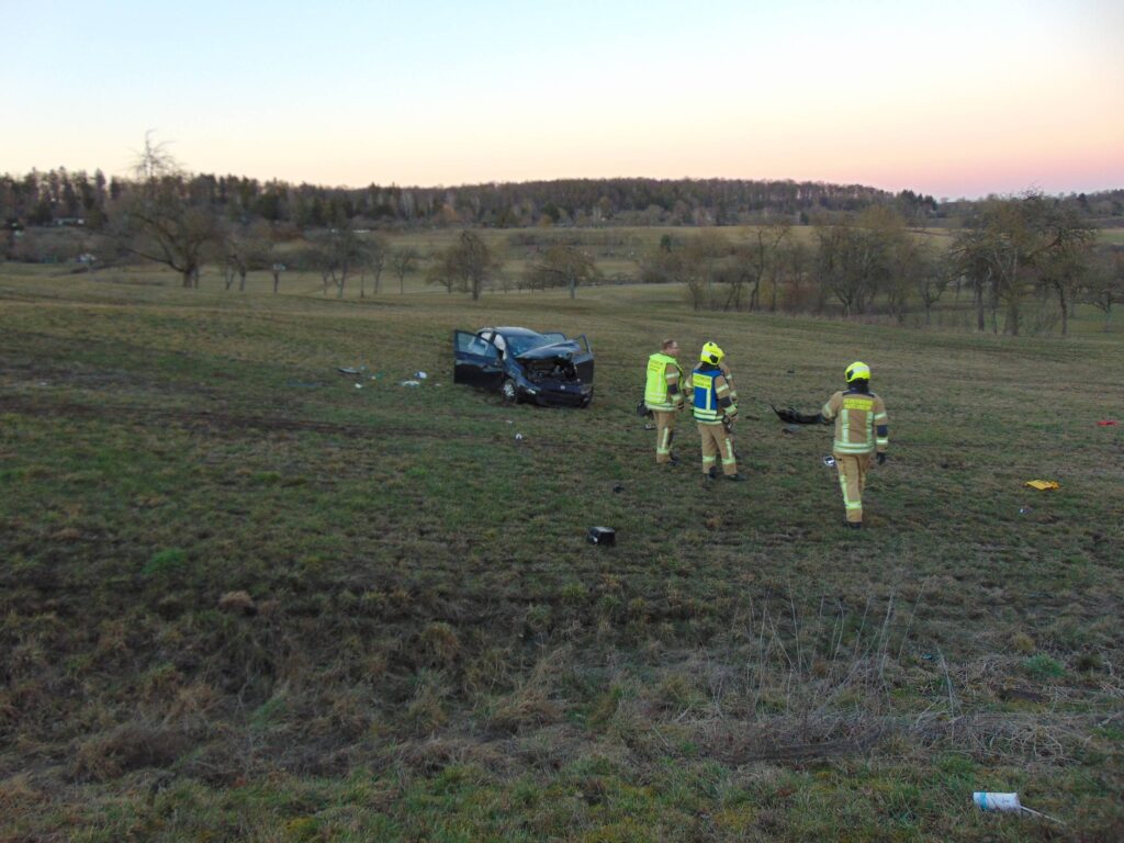 Gemeldet wurde eine Rauchentwicklung aus PKW nach Verkehrsunfall. Bei Eintreffen der ersten Einsatzkräfte konnte ein nicht mehr fahrbereites Fahrzeug abseits der Straße im Acker vorgefunden werden. Der Fahrer lag außerhalb des Fahrzeuges im Freien und wurde vom zeitgleich eintreffenden Rettungsdienst versorgt. Das Fahrzeug wurde im weiteren Verlauf kontrolliert, jedoch konnte keine Rauchentwicklung mehr festgestellt werden. Es wurde ein Großteil der herumliegenden Fahrzeugteile eingesammelt, die Einsatzstelle abgesichert und ausgeleuchtet, sowie das nachgeforderte Abschleppunternehmen unterstützt.
