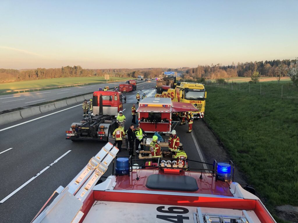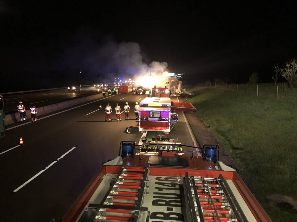 Am Donnerstagmorgen gegen 02.10 Uhr wurde die Freiwillige Feuerwehr Rutesheim mit der Meldung 2BA auf die BAB 8 Fahrtrichtung Karlsruhe auf Höhe Parkplatz Höllberg alarmiert.