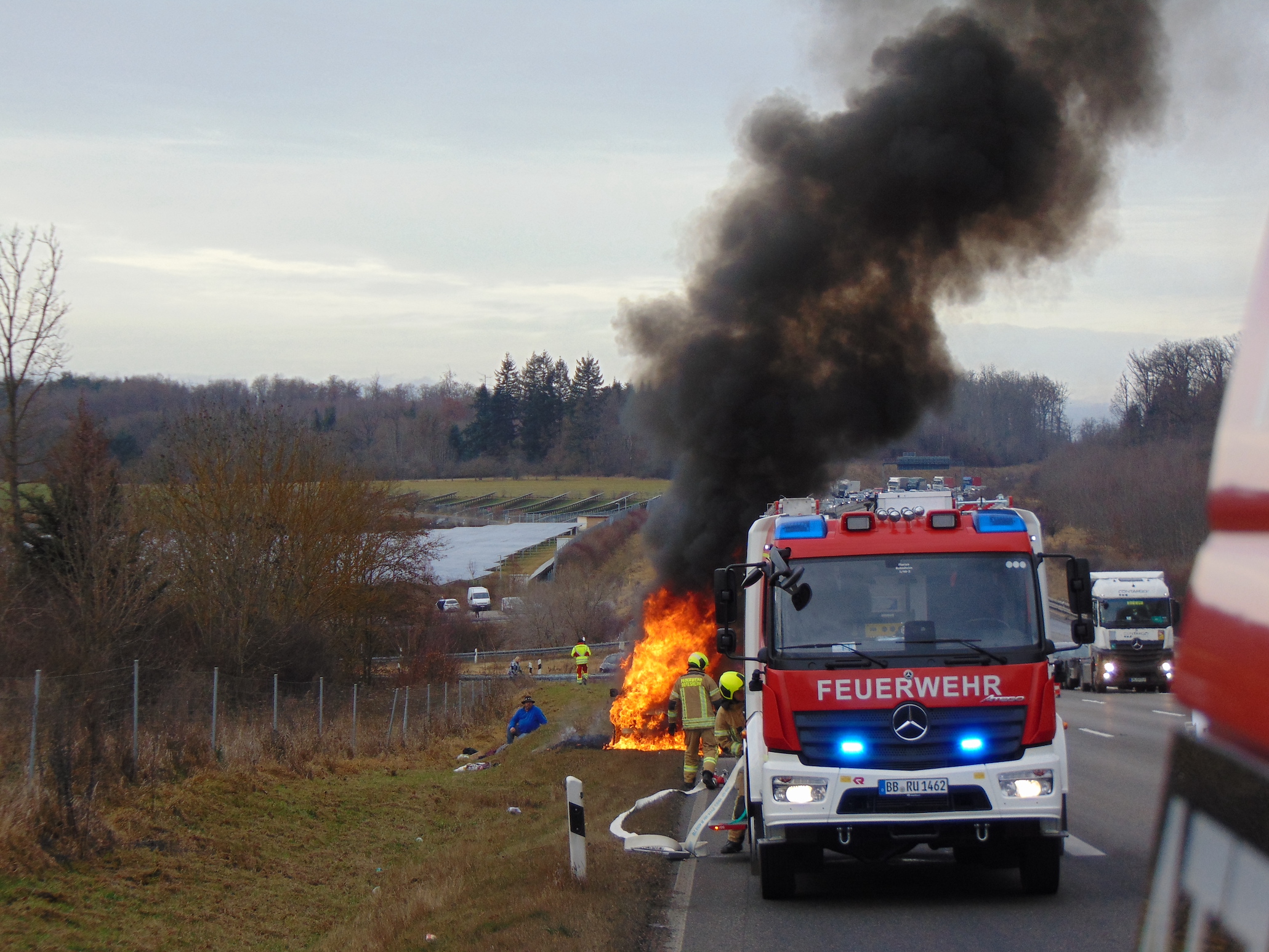 Am Donnerstagmittag gegen 13:20 Uhr wurde die Freiwillige Feuerwehr Rutesheim mit der Meldung 1BA auf die BAB 8 zu einem PKW Brand alarmiert.