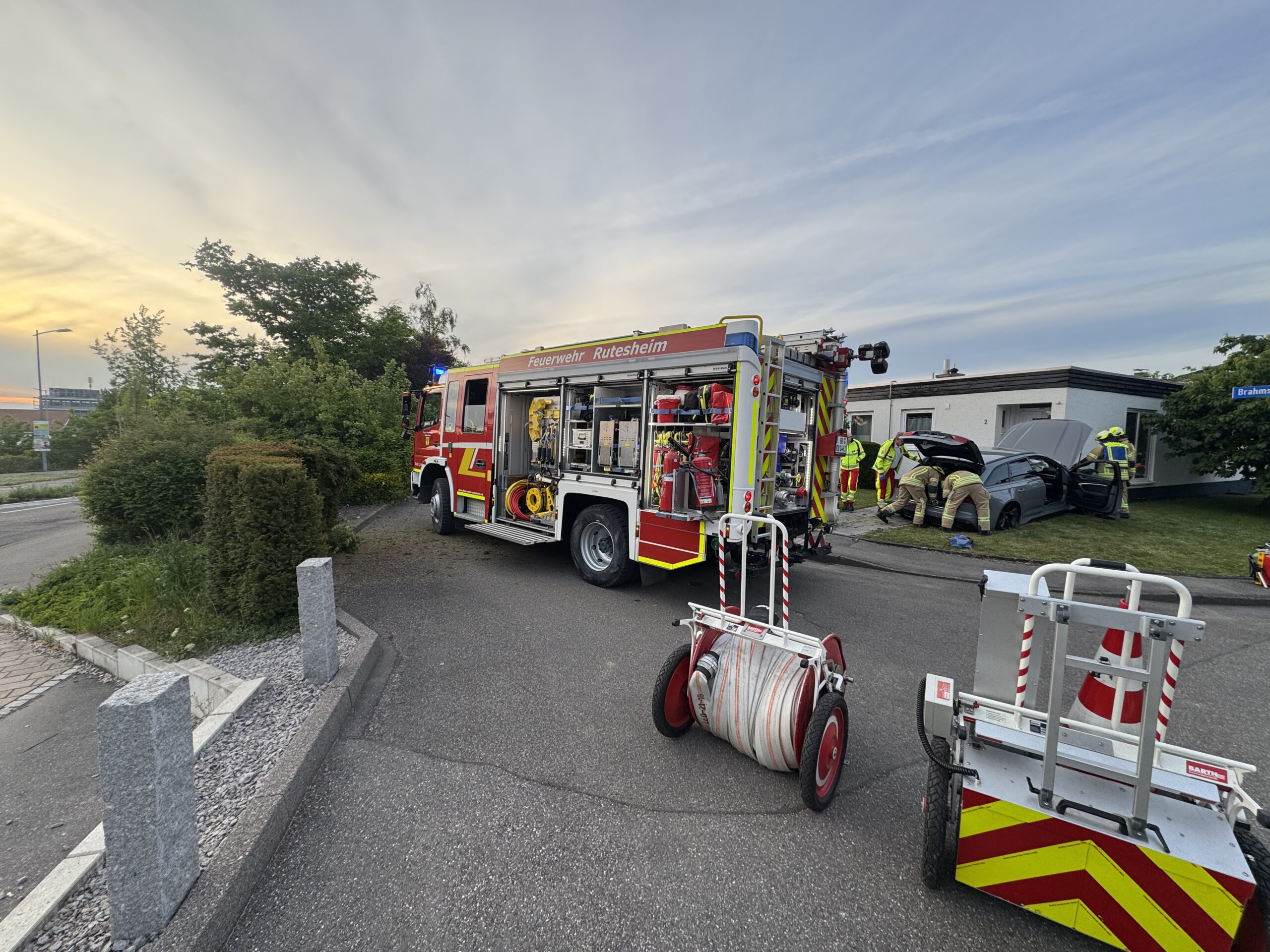 Am Donnerstagmorgen wurde die Feuerwehr Rutesheim mit dem Alarmstichwort 0 VU in die Brahmsstraße gerufen. Über ein automatisches Notrufsystem (E-Call) war ein Frontalzusammenstoß gemeldet worden.