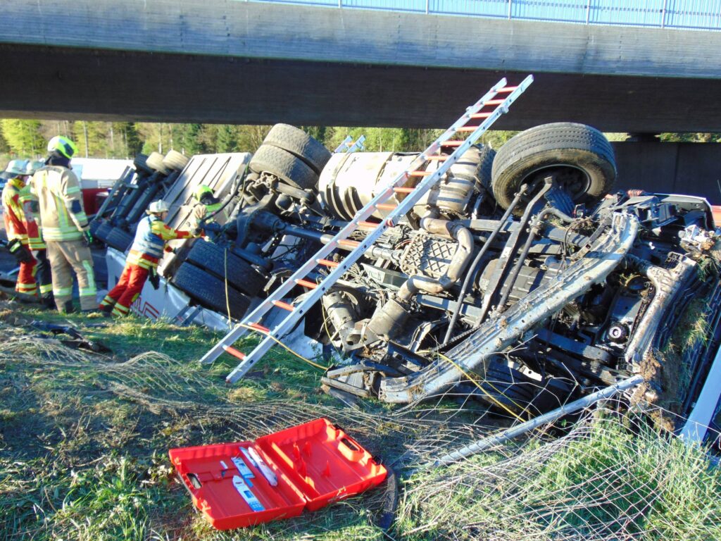Es wurde ein LKW im Graben mit zwei eingeschlossenen Personen gemeldet. Die Freiwillige Feuerwehr Rutesheim befreite die zwei Fahrer des LKW durch die Frontscheibe. Anschließend wurde gemeinsam mit der Freiwilligen Feuerwehr Leonberg die Betriebsstoffe aus einem gerissenen Tank gebunden bzw. abgepumpt. Gegen 8:00 Uhr war die Tätigkeit für die Feuerwehr beendet, die Bergungsarbeiten wurden durch eine Spezialfirma übernommen und dauerten bis zum nächsten Tag. Es kam zu massiven Verkehrsbehinderungen.