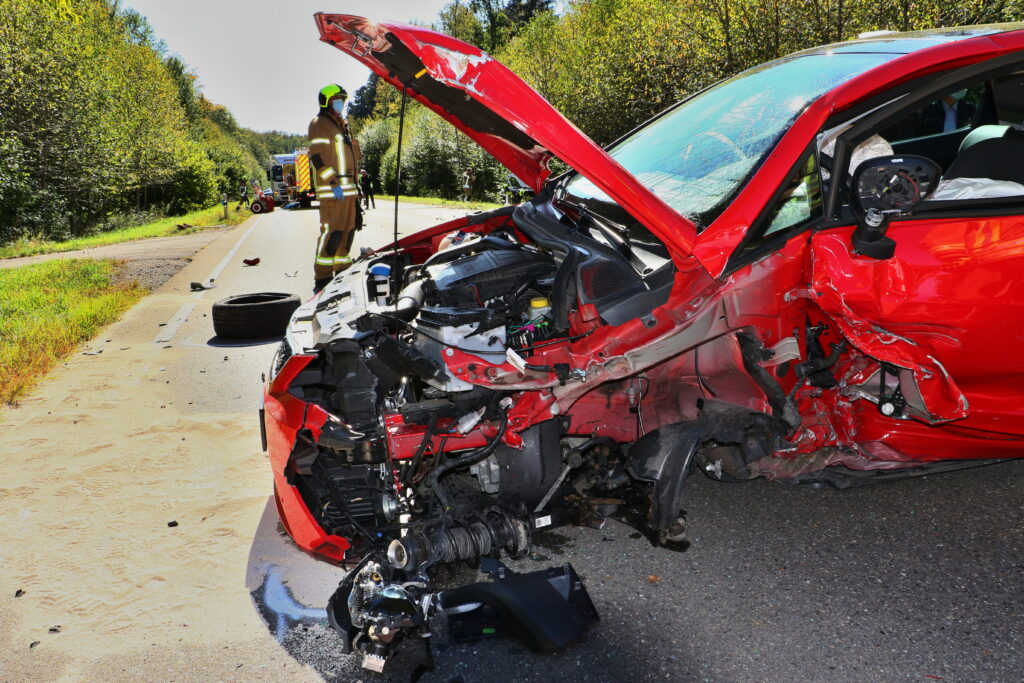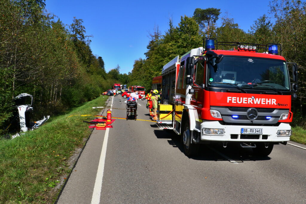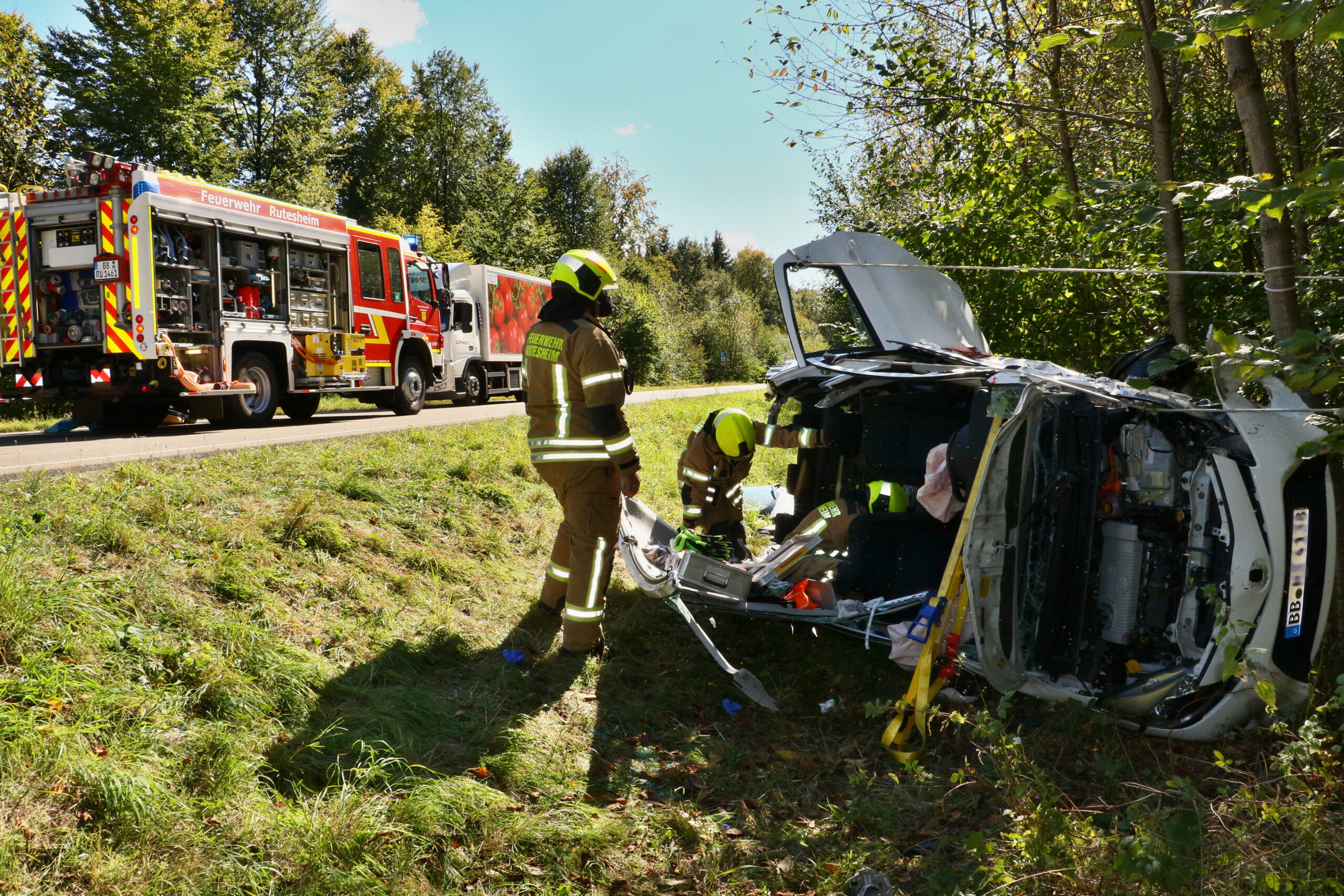 Zwei PKWs kollidierten aus bislang unbekannter Ursache. Dabei wurde eines der Fahrzeuge in den Straßengraben abgewiesen und blieb in Folge auf der Seite liegen. Eine Fahrerin wurde schwer verletzt eingeschlossen und konnte sich nicht mehr selbsttätig befreien. Durch den Einsatz von zwei hydraulischen Rettungssätzen konnte die Fahrerin durch die Kräfte von Rutesheim und Leonberg erfolgreich befreit werden. Im Verlauf wurden beide Fahrerinnen schwer verletzt dem Rettungsdienst übergeben. Weiterhin wurde der Brandschutz sichergestellt und ausgelaufene Betriebsstoffe aufgenommen.