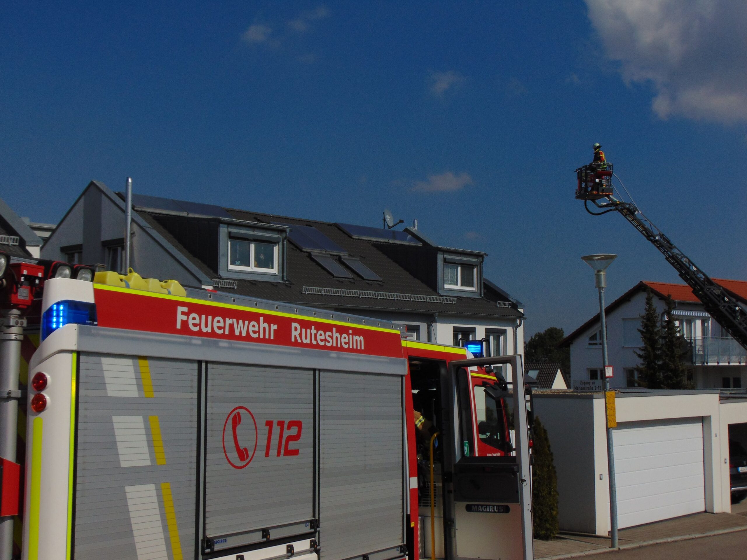Vor Ort konnte mithilfe der Drehleiter ein technischer Defekt der Solarheizung auf dem Dach ausgemacht werden. Durch einen undichten Schraubverschluss entstand Wasserdampf. Somit war kein weiteres Eingreifen der Feuerwehr notwendig.