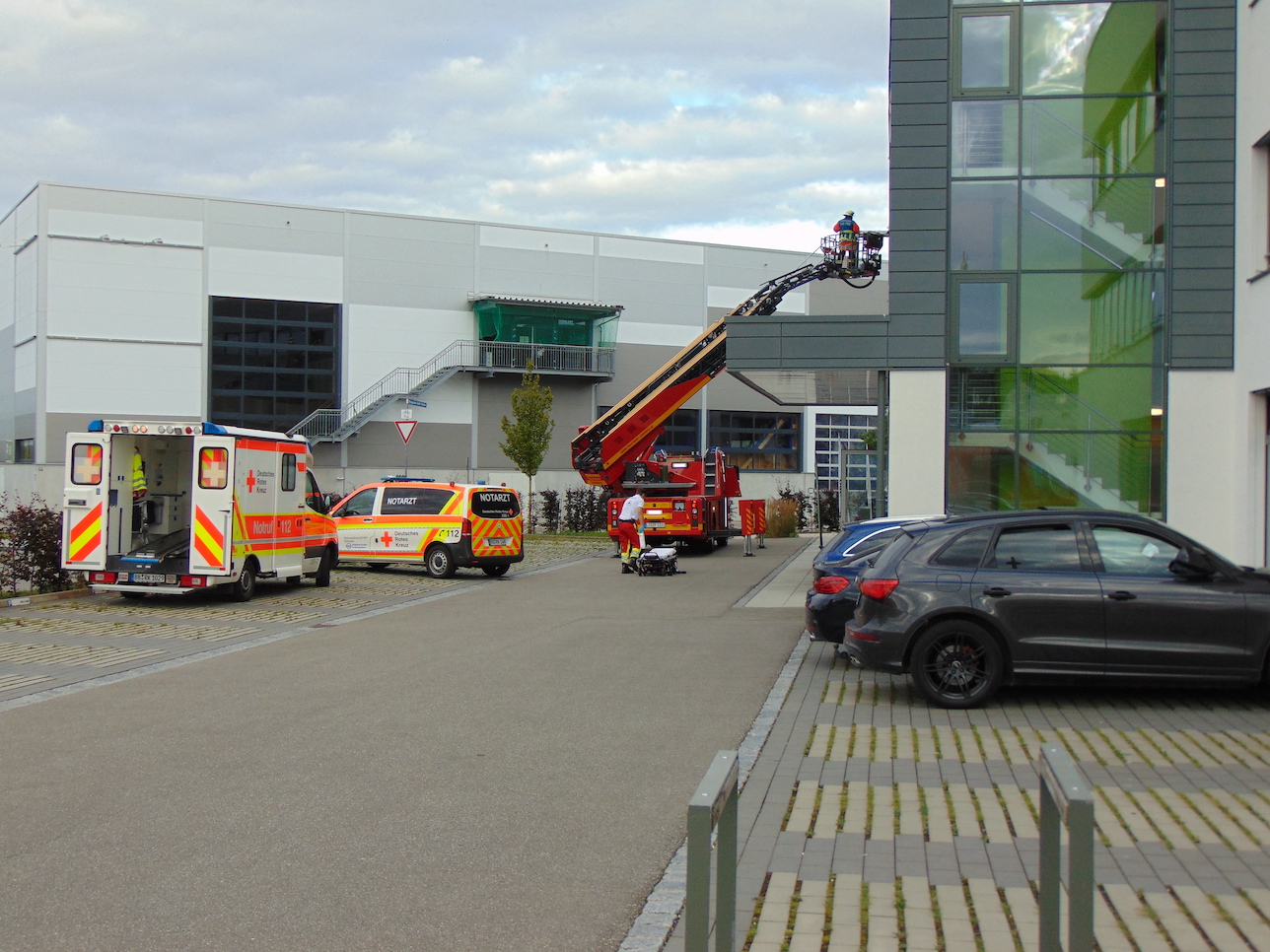 Ein Kunde kollabierte während des Trainings. Der Rettungsdienst benötigte bei der anschließenden Personenrettung die Unterstützung der Feuerwehr. Mithilfe der Drehleiter aus Leonberg wurde der Patient aus dem Obergeschoss gerettet und dem Rettungsdienst übergeben.