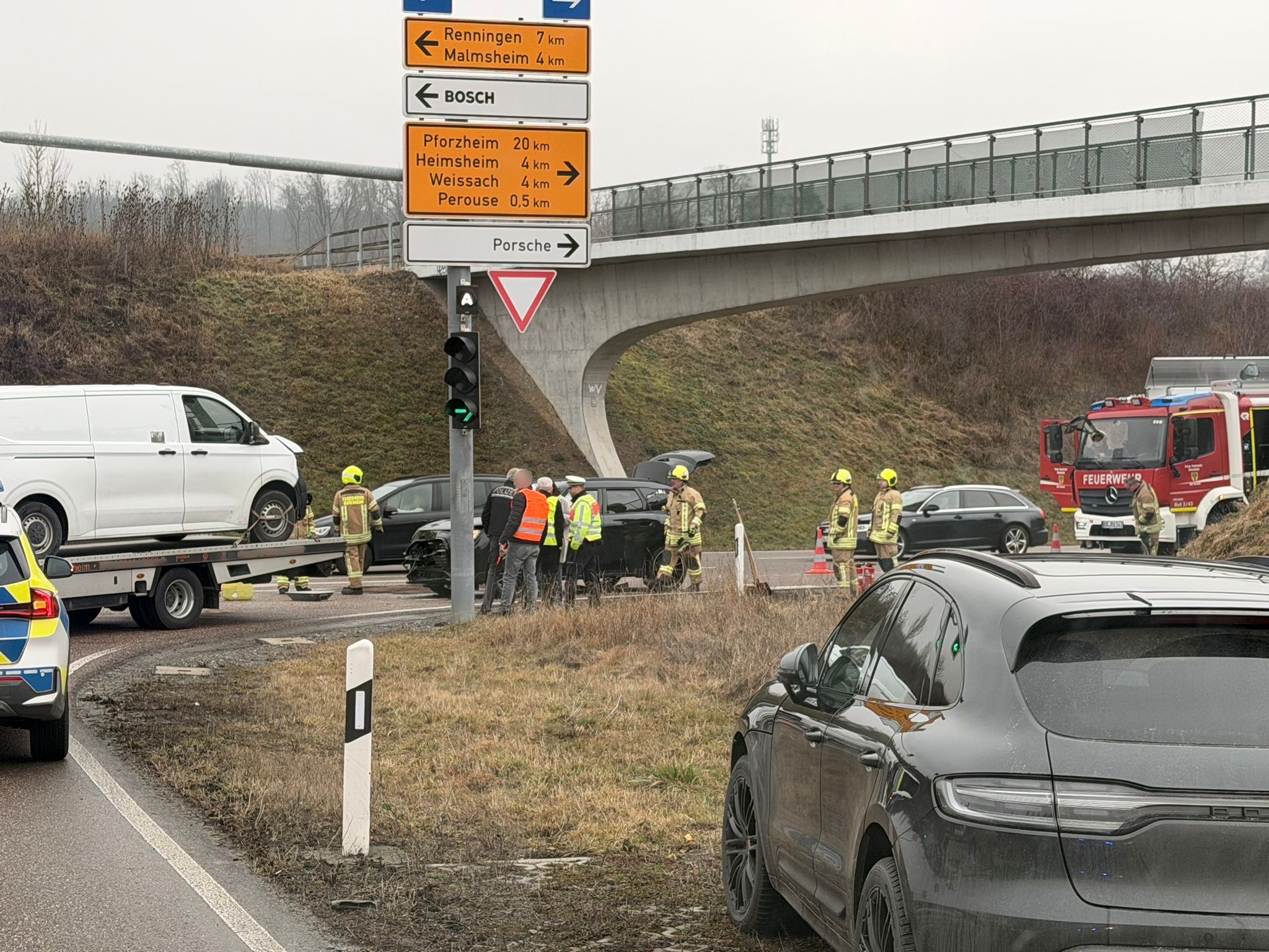 Am Freitagmorgen wurde die Abteilung Perouse mit dem Alarmstichwort 0 VU zu einem Verkehrsunfall auf die L1180 im Kreuzungsbereich Perouse und der Autobahnanschlussstelle Rutesheim alarmiert.