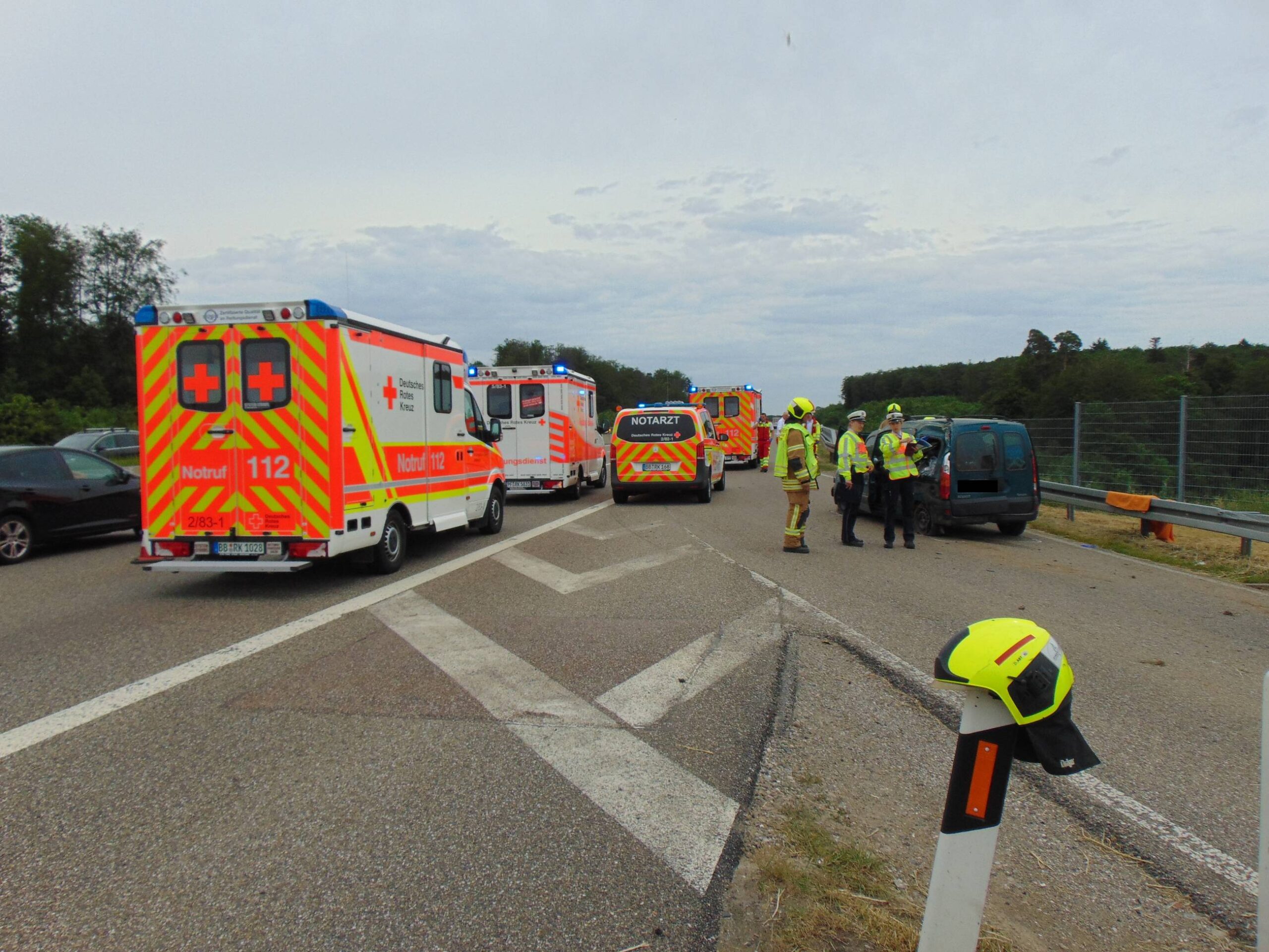 Dort hatte sich aufgrund eines Reifenplatzers ein Fahrzeug überschlagen. Die drei Insassen befanden sich bei Eintreffen bereits außerhalb des Fahrzeugs und wurden vom eintreffenden Rettungsdienst übernommen. Alle drei mussten ins Krankenhaus gebracht werden. Die Einsatzstelle wurde im Verlauf abgesichert, der Brandschutz sichergestellt und die Batterie abgeklemmt.