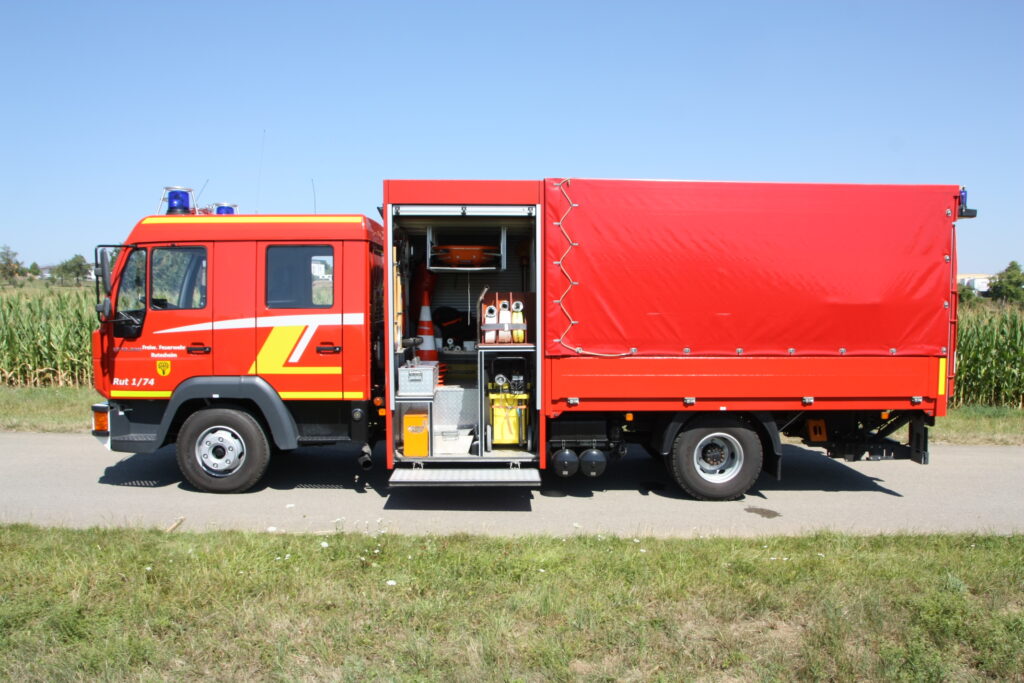 Der Gerätewagen-Transport ist das Arbeitstier beider Abteilungen. Er ist mit einem mobilen Containersystem ausgestattet, sodass es je nach Einsatzlage individuell bestückt werden kann. Es wird bei sämtlichen Einsätzen mit ausgelaufenen Betriebsmitteln eingesetzt oder zum Transport von verunreinigtem Material. Seit 2018 ist der GW-T fester Bestandteil des Rutesheimer Konzepts zur Schwarz-Weiß-Trennung und Einsatzstellenhygiene. Weiterhin dient das Fahrzeug auch der Jugendfeuerwehr als Übungsfahrzeug.