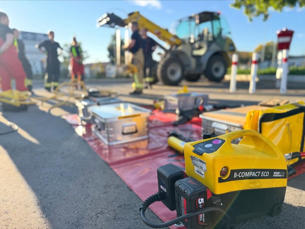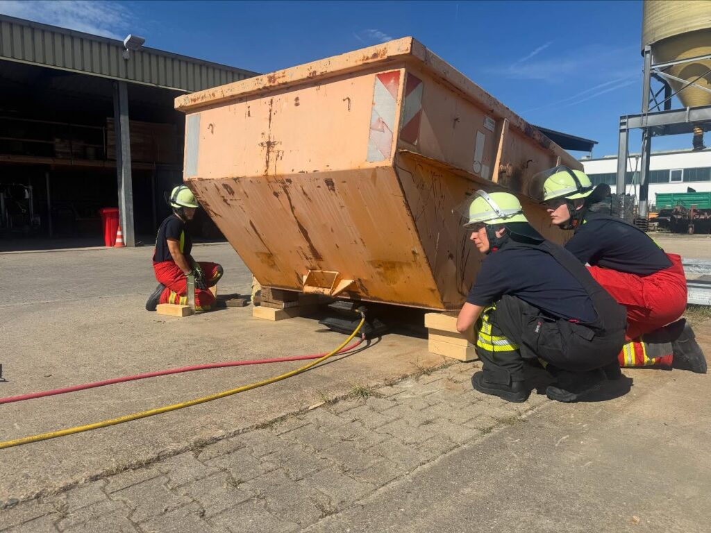 An drei Stationen wurden Grundlagen im Bereich der Technischen Hilfeleistung gezeigt. So wurde an der ersten Station mittels Mehrzeckzug und Hebekissen das Bewegen von Lasten und an der zweiten Station Trennen und Sägen mittel Säbelsäge und Trennschleifer trainiert.